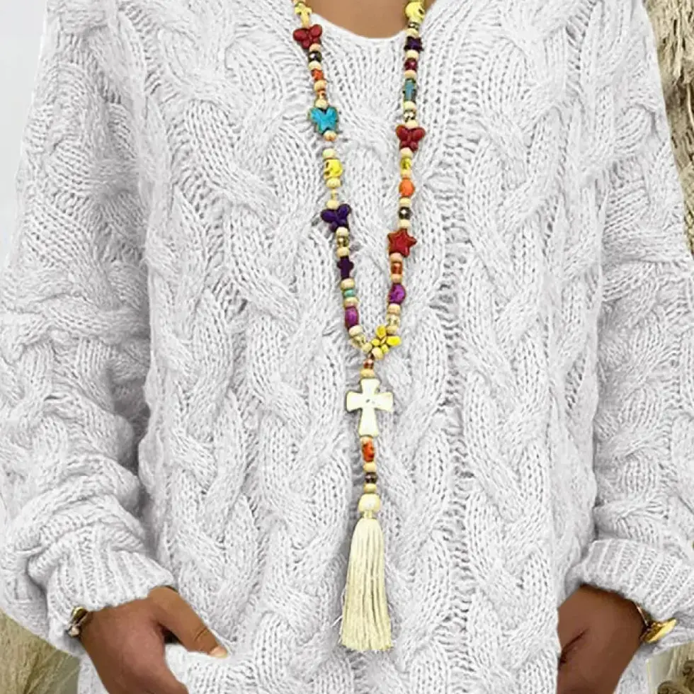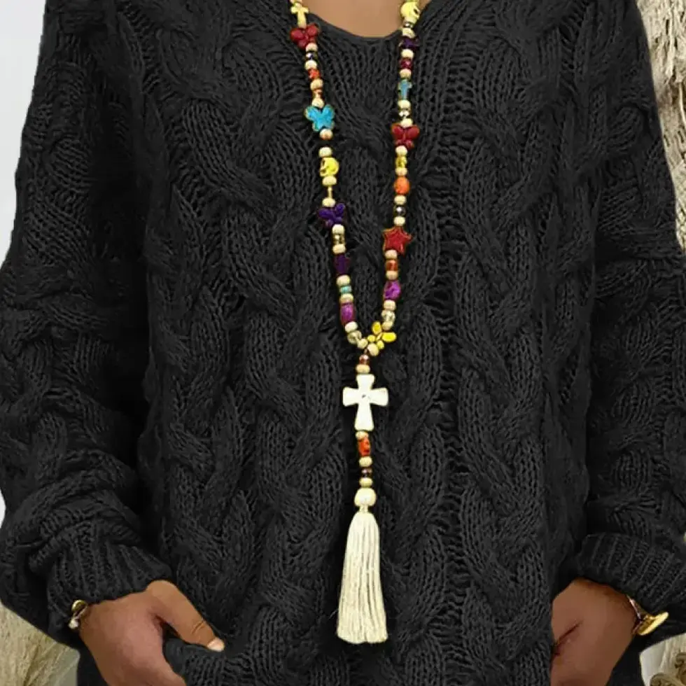 A staple piece for cooler days, this sweater combines cozy texture with effortless, everyday style.