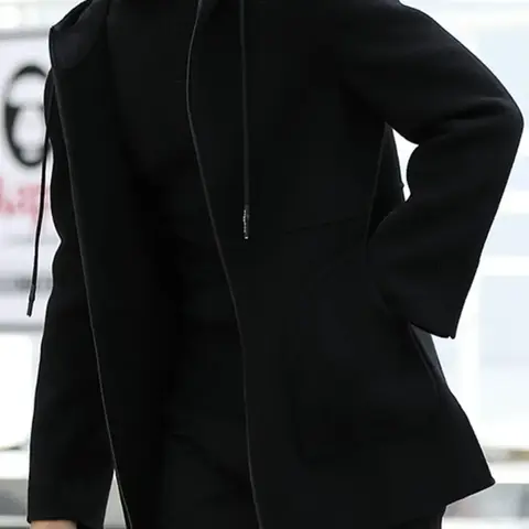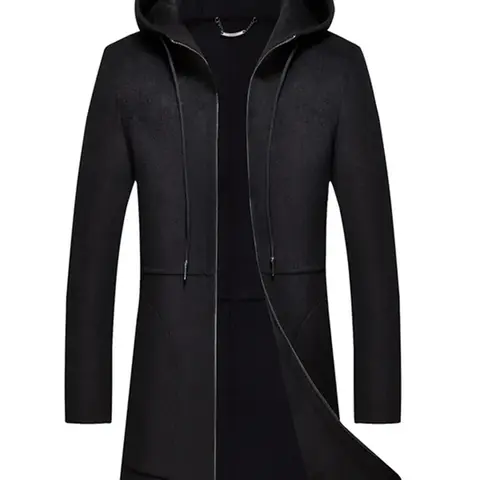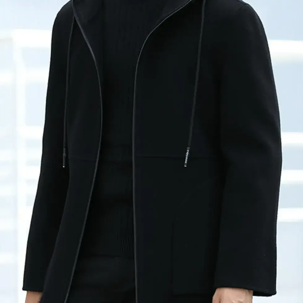 Warmth meets style in this modern wool coat designed for men who value both comfort and confidence. The clean zip-up front gives it a sharp, structured look, while the adjustable drawstring hood adds a relaxed, practical touch for cold-weather days.