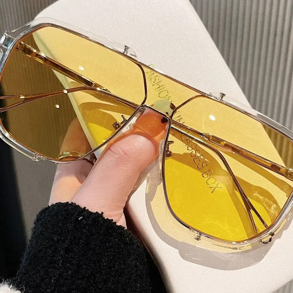 The oversized alloy frame adds instant drama and sophistication, while the UV400 acrylic lenses keep your eyes shielded from harmful rays. Lightweight metal temples ensure a secure, comfortable fit, perfect for long sunny days or stylish city strolls.